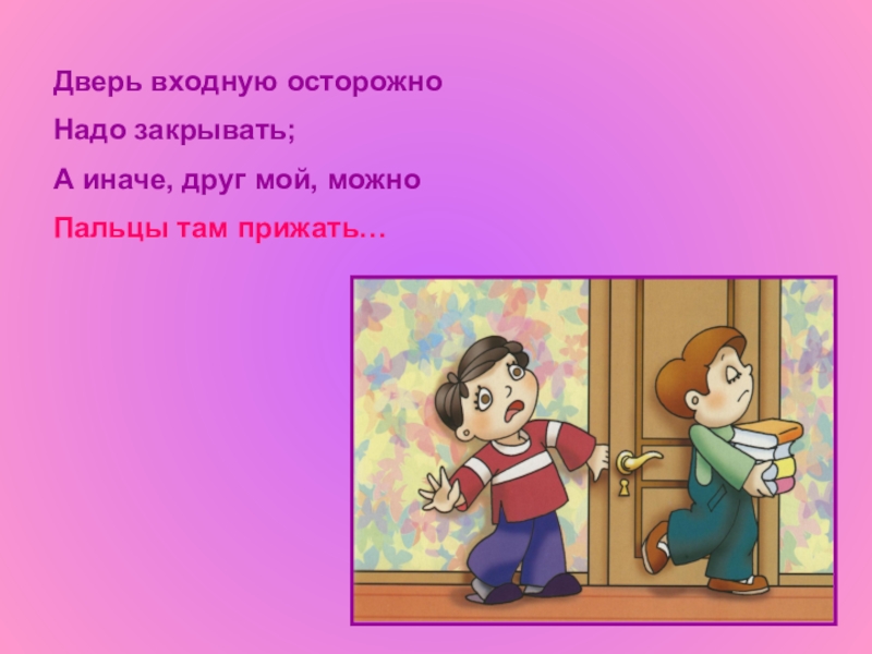 Дверь входную осторожноНадо закрывать;А иначе, друг мой, можноПальцы там прижать…