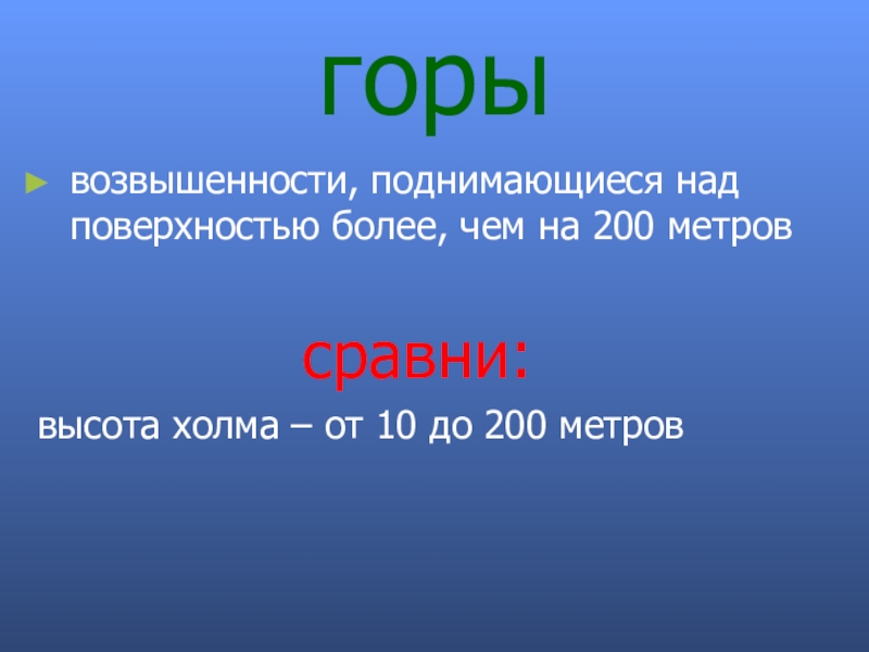 горывозвышенности, поднимающиеся над поверхностью более, чем на 200 метров