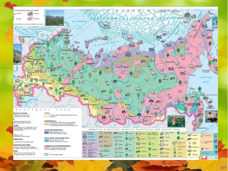 географическим положением природной зоны лесов, растительным и животным миром, деятельностью человека.