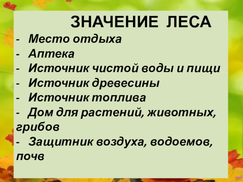 Слайд 23 ЗНАЧЕНИЕ ЛЕСА