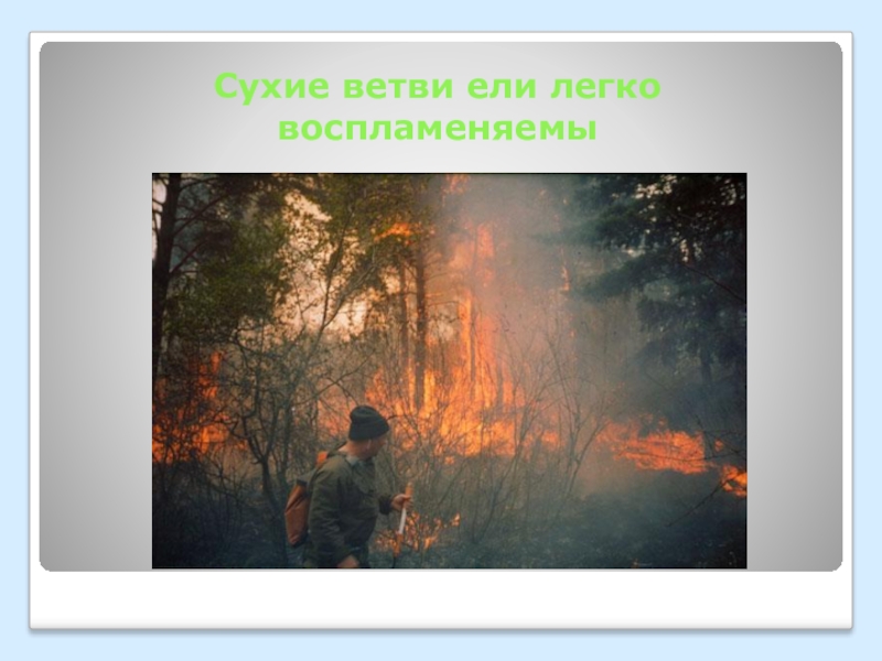 Слайд 7Сухие ветви ели легко воспламеняемы