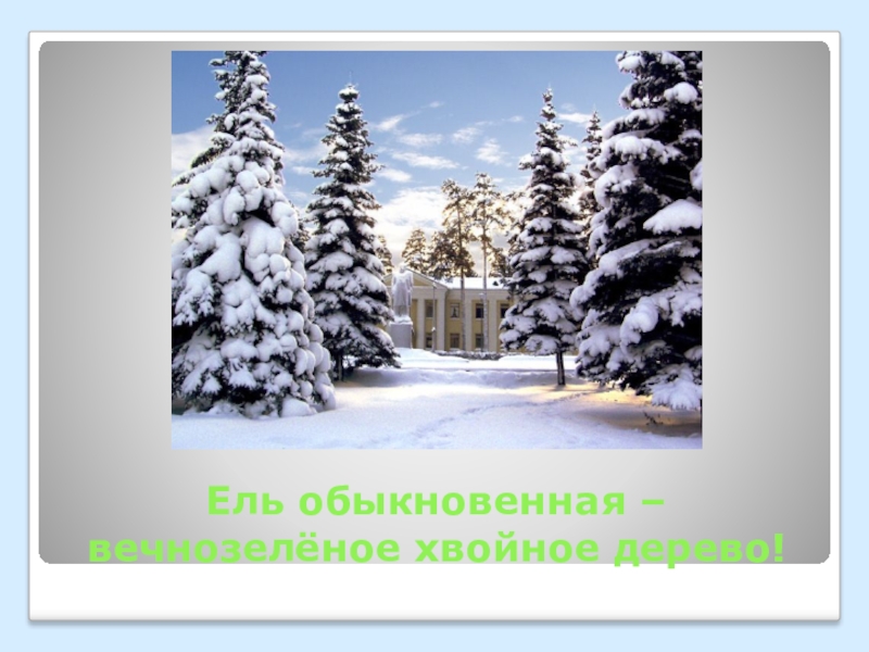 Слайд 5Ель обыкновенная – вечнозелёное хвойное дерево!