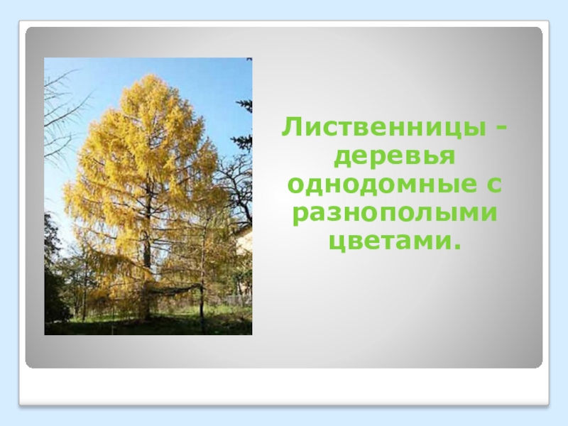 Слайд 8Лиственницы - деревья однодомные с разнополыми цветами.