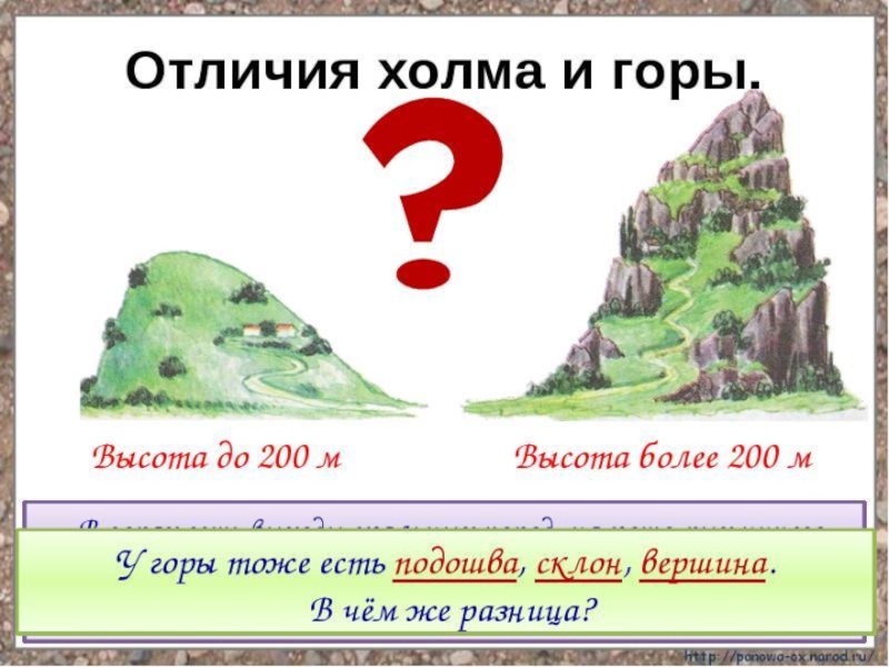 Презентация, доклад по окружающему миру на тему Формы земной поверхности (2 класс)