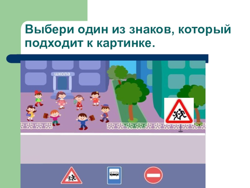 Слайд 21Выбери один из знаков, который подходит к картинке.