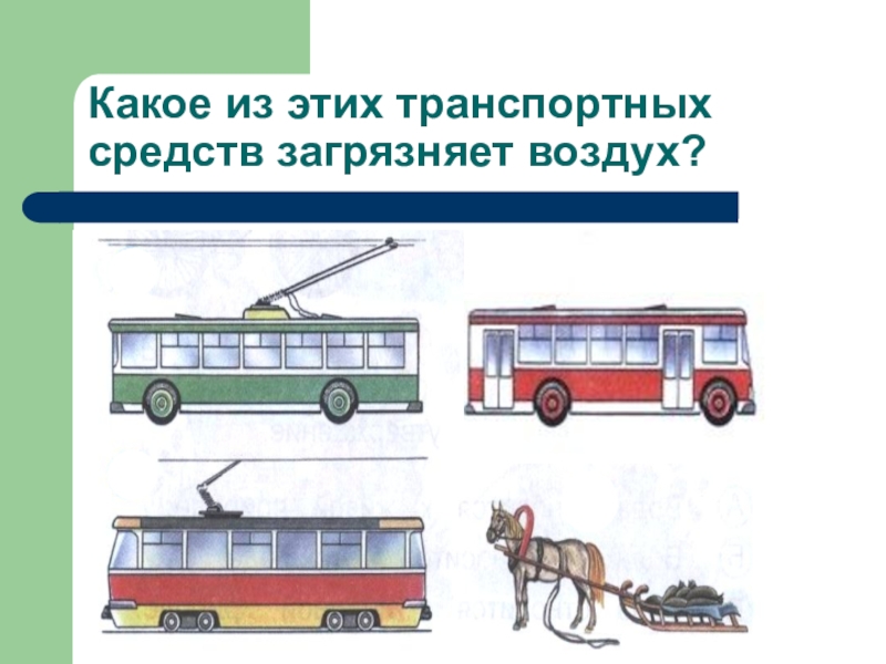 Слайд 19Какое из этих транспортных средств загрязняет воздух?