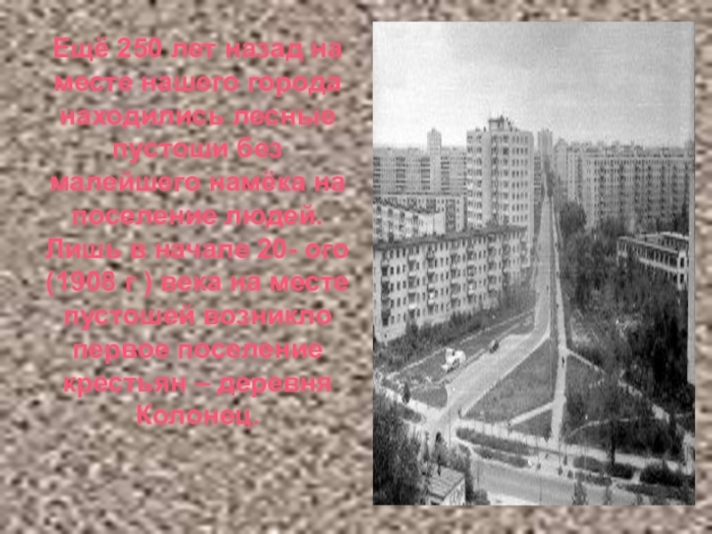 Ещё 250 лет назад на месте нашего города находились лесные пустоши