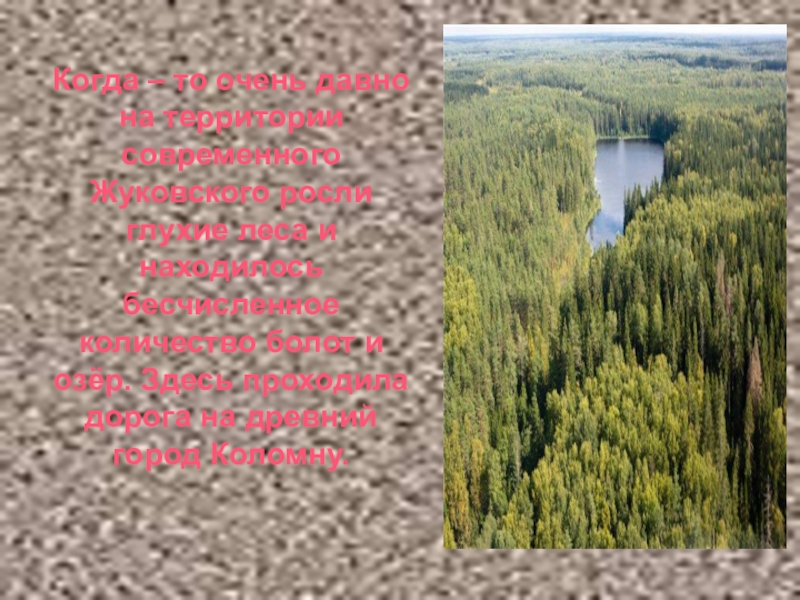 Когда – то очень давно на территории современного Жуковского росли глухие леса и находилось бесчисленное количество болот
