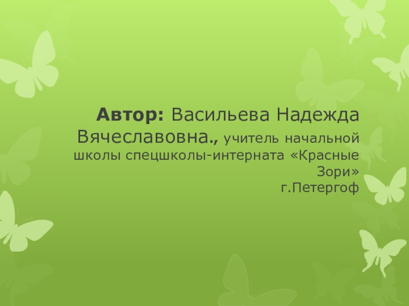 Слайд 22Автор: Васильева Надежда Вячеславовна., учитель начальной школы спецшколы-интерната «Красные Зори» г.Петергоф