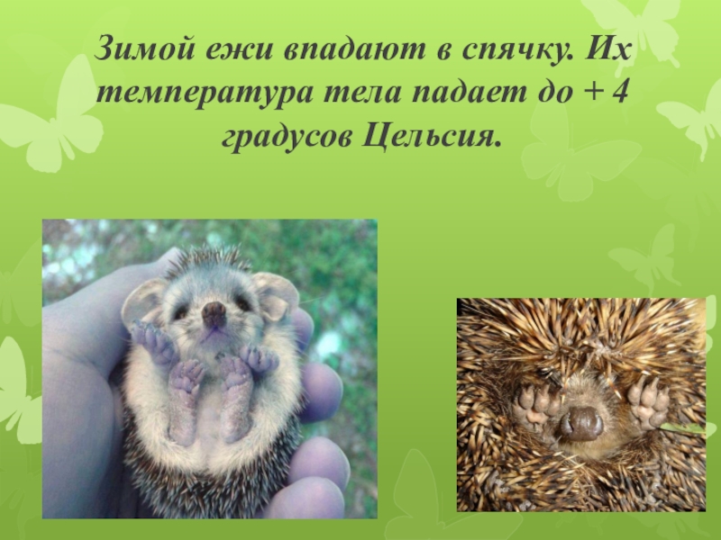 Слайд 6Зимой ежи впадают в спячку. Их температура тела падает до +