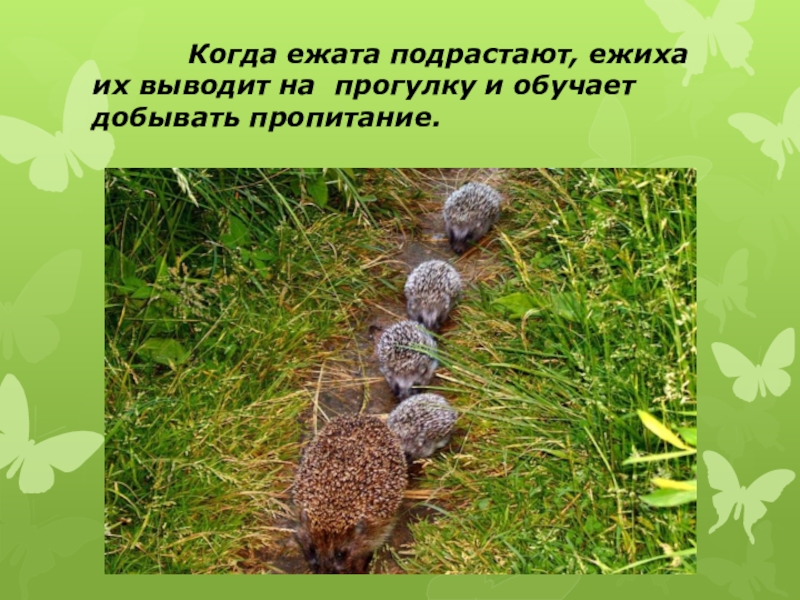 Слайд 9 Когда ежата подрастают, ежиха