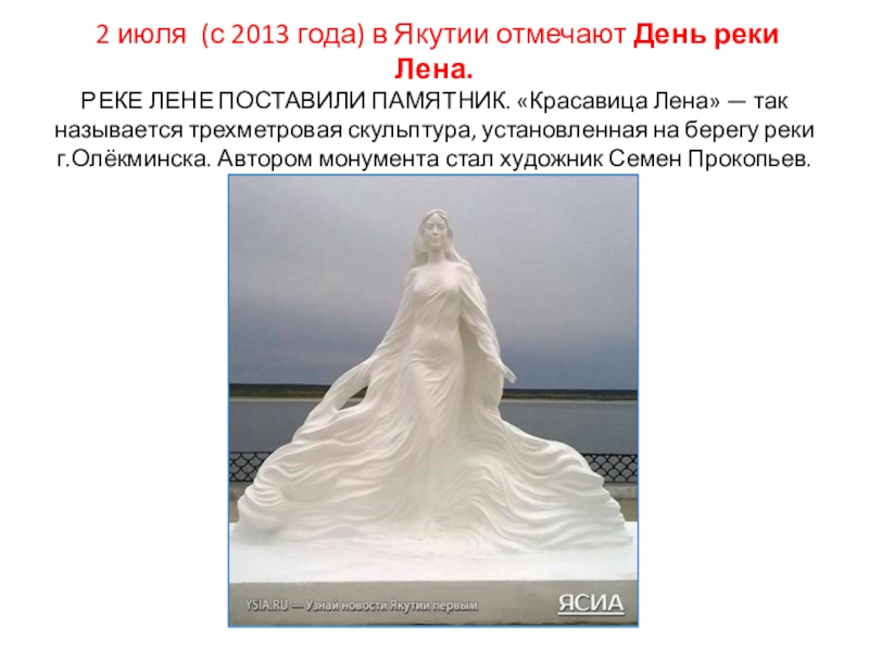 Республика Саха (Якутия) – уникальный северный край. Это страна многочисленных рек и озёр. Главной рекой является – река Лена.