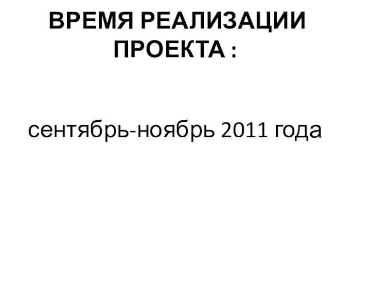 Слайд 5 ВРЕМЯ РЕАЛИЗАЦИИ ПРОЕКТА :   сентябрь-ноябрь 2011 года