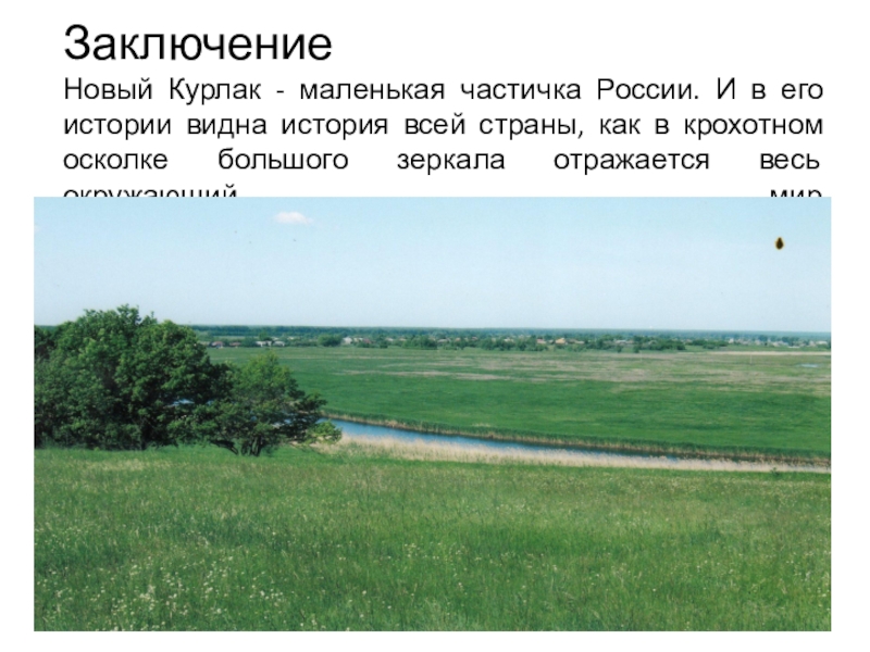 Слайд 19 Заключение Новый Курлак - маленькая частичка России. И в его истории видна