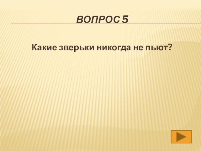 Вопрос 5Какие зверьки никогда не пьют?