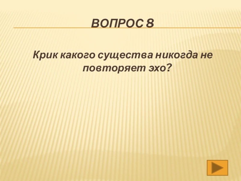 Вопрос 8Крик какого существа никогда не повторяет эхо?