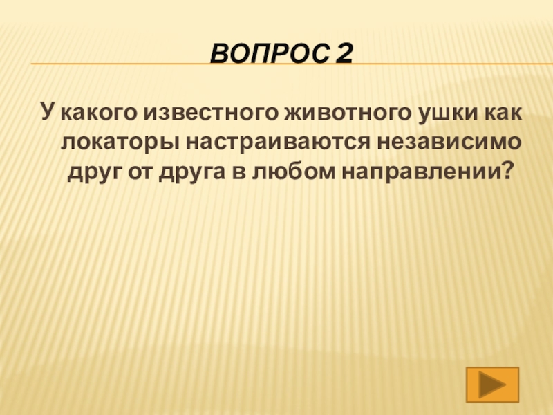 Вопрос 2У какого известного животного ушки как локаторы настраиваются независимо друг от друга в любом направлении?