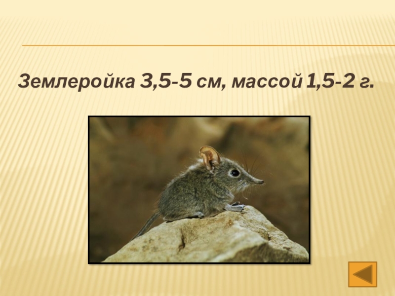 Слайд 8Землеройка 3,5-5 см, массой 1,5-2 г.