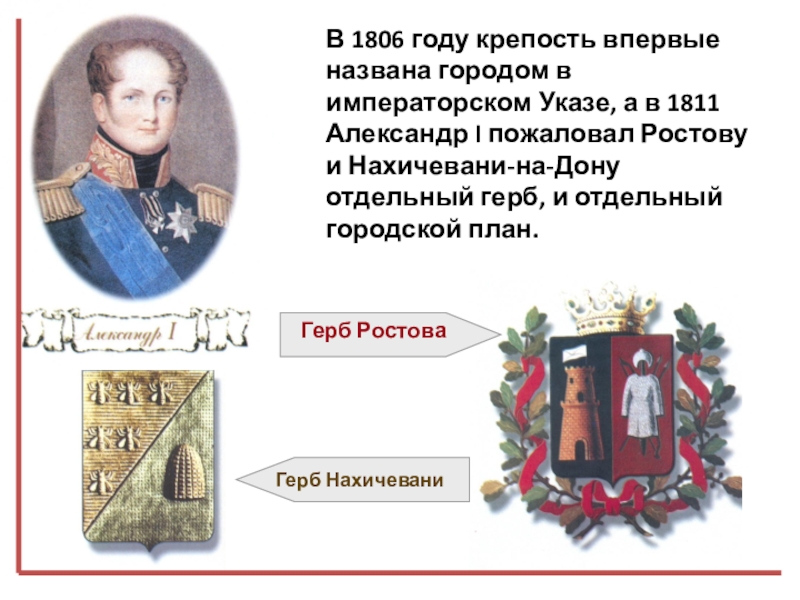 в 1811 Александр I пожаловал Ростову и Нахичевани-на-Дону отдельный герб, и отдельный городской план.