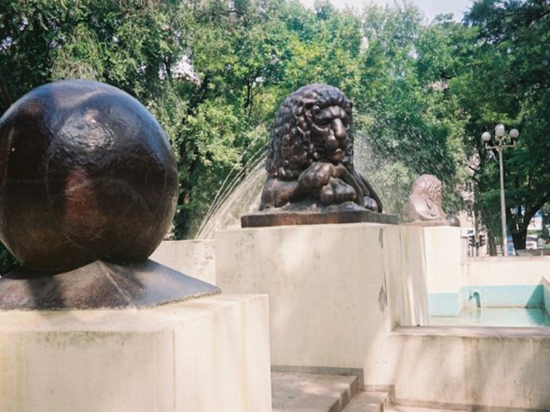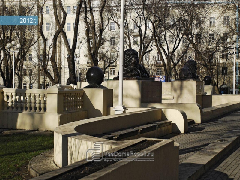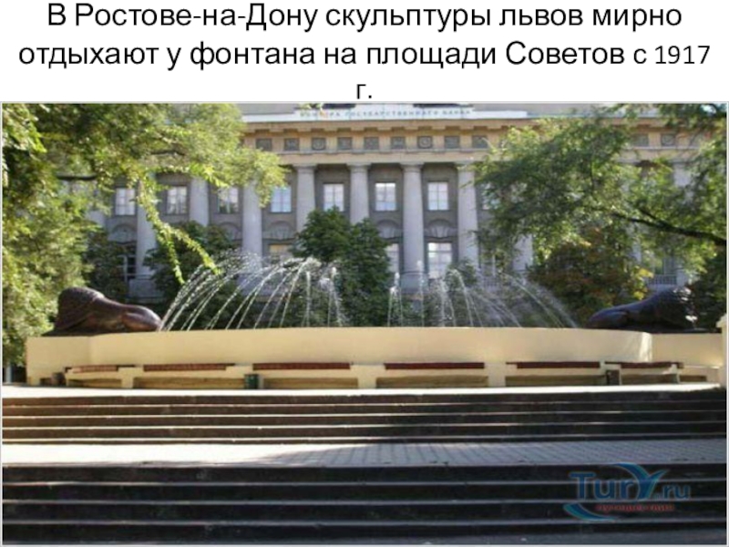 Слайд 39В Ростове-на-Дону скульптуры львов мирно отдыхают у фонтана на площади Советов