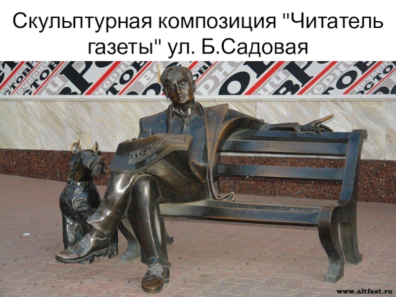 Слайд 38Скульптурная композиция "Читатель газеты" ул. Б.Садовая
