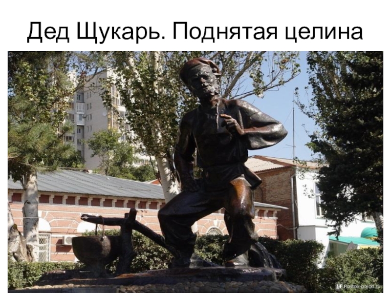 Слайд 55У входа в парк Горького стоит скульптура — Коробейник с котом.