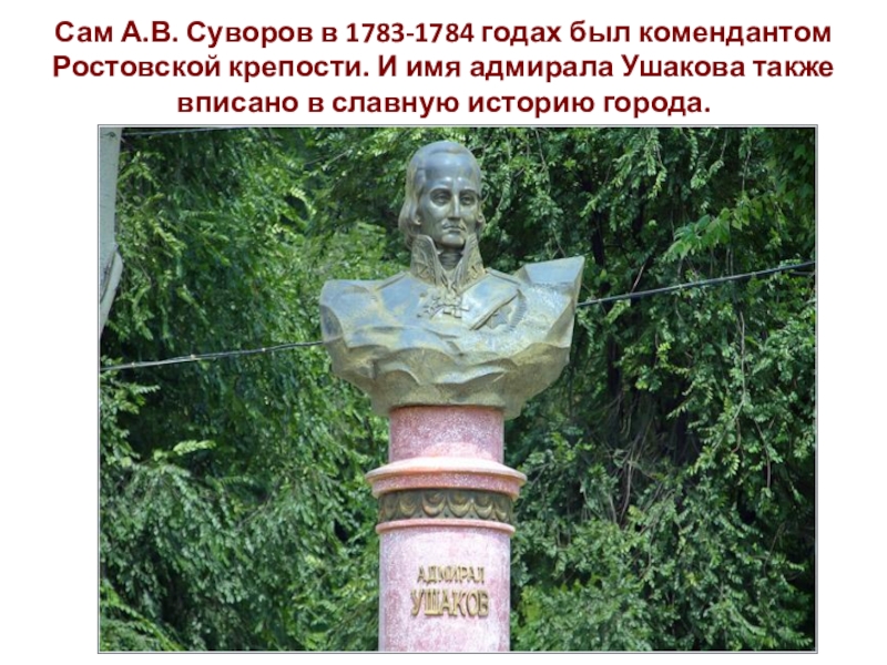 Слайд 23Сам А.В. Суворов в 1783-1784 годах был комендантом Ростовской крепости. И