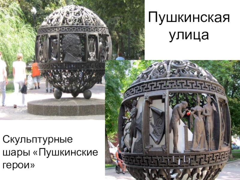 Слайд 51Скульптурные шары «Пушкинские герои»