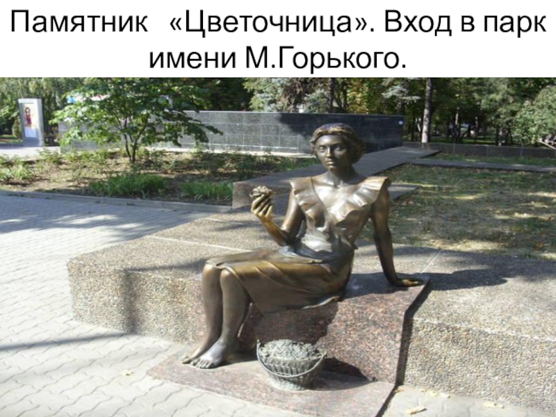Слайд 56Памятник «Цветочница». Вход в парк имени М.Горького.