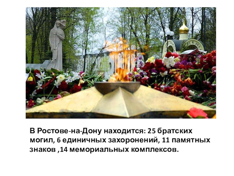 Слайд 72В Ростове-на-Дону находится: 25 братских могил, 6 единичных захоронений, 11 памятных