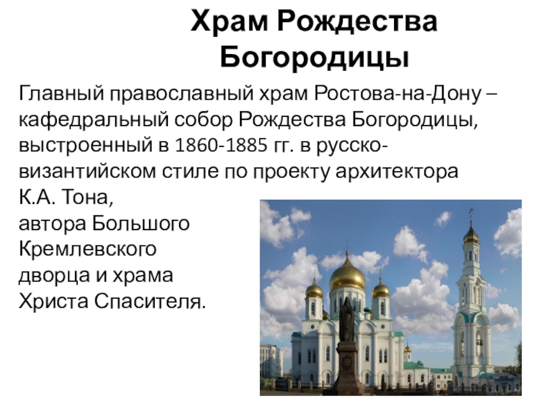 Главный православный храм Ростова-на-Дону – кафедральный собор Рождества Богородицы,