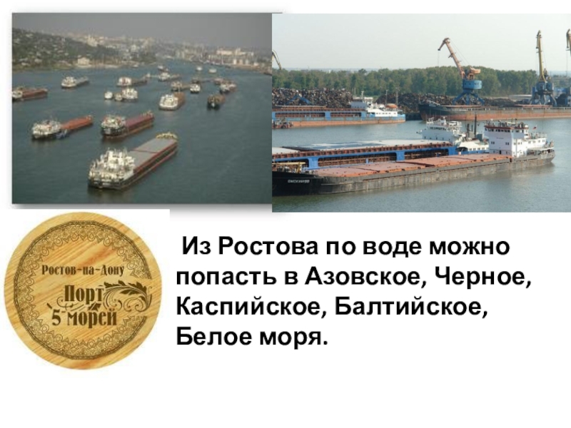 Слайд 13 Из Ростова по воде можно попасть в Азовское, Черное, Каспийское,