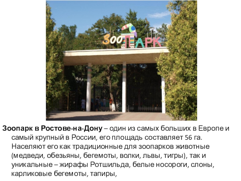 Слайд 65Зоопарк в Ростове-на-Дону – один из самых больших в Европе и