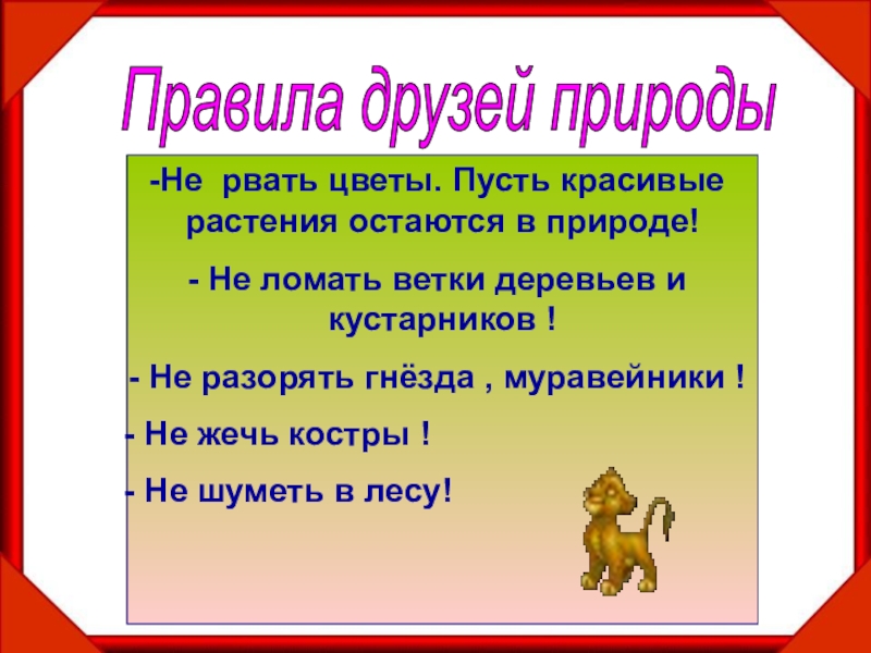 Охранять заповедники.