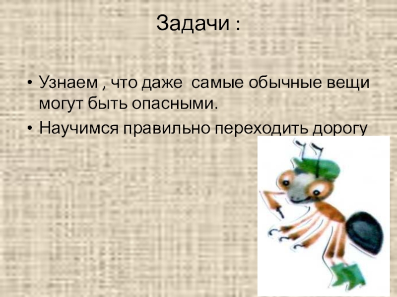 Задачи : Узнаем , что даже самые обычные вещи могут быть опасными.Научимся правильно переходить дорогу