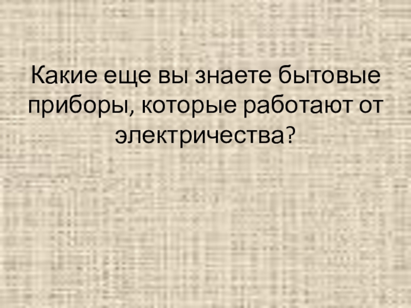 Слайд 16Какие еще вы знаете бытовые приборы, которые работают от электричества?