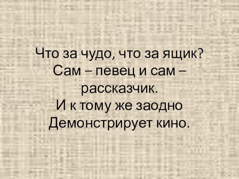 Слайд 13Что за чудо, что за ящик? Сам – певец и сам –
