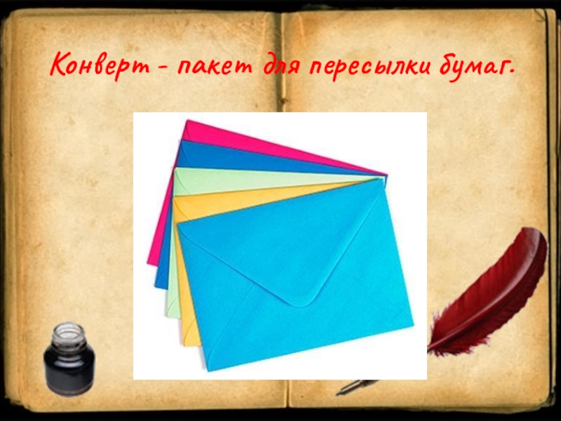 Слайд 9Конверт - пакет для пересылки бумаг.