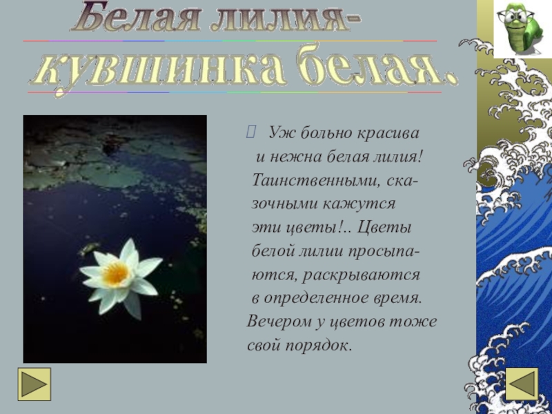 Уж больно красива  и нежна белая лилия! Таинственными, ска- зочными кажутся эти цветы!.. Цветы белой лилии