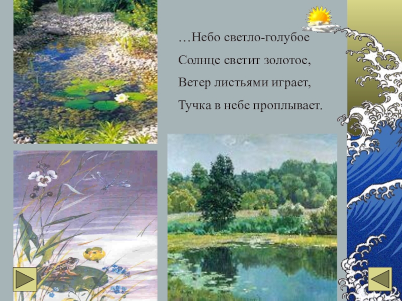 …Небо светло-голубоеСолнце светит золотое, Ветер листьями играет, Тучка в небе проплывает.