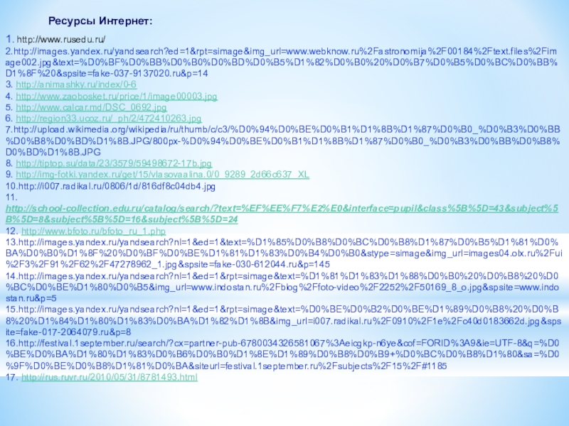 Ресурсы Интернет: