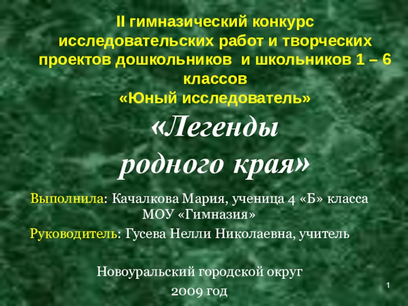 Выполнила: Качалкова Мария, ученица 4 «Б» класса МОУ «Гимназия»