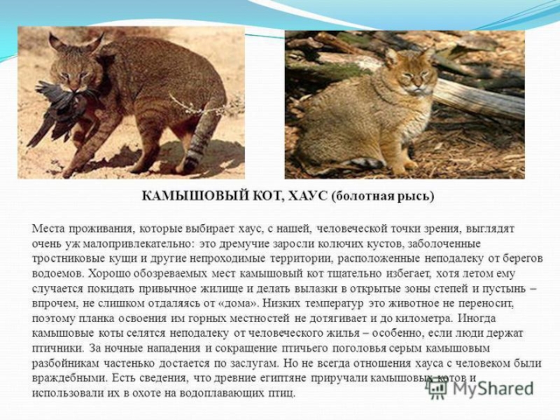 Презентация, доклад по окружающему миру на тему Камышовый кот
