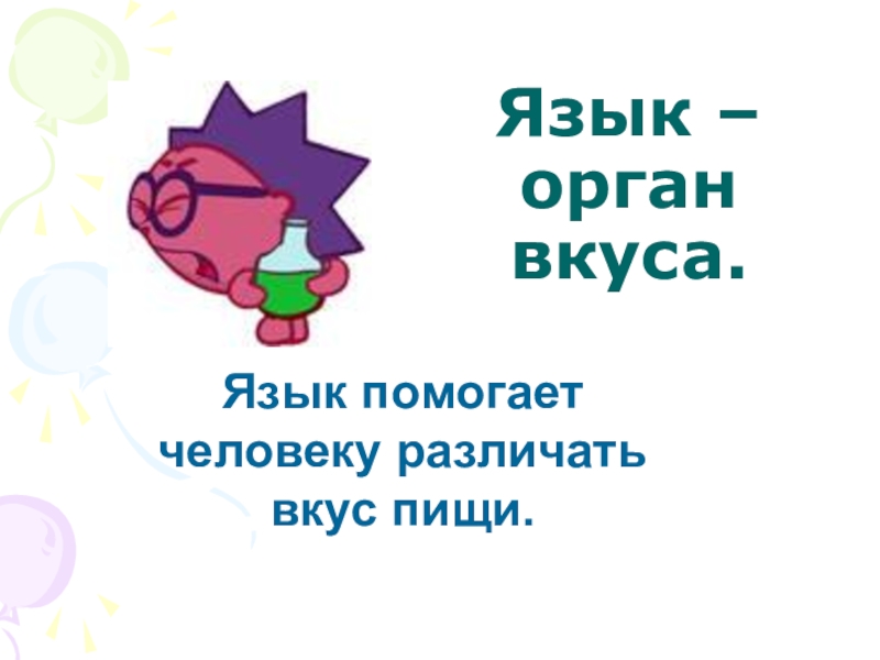 Слайд 18Язык – орган вкуса.