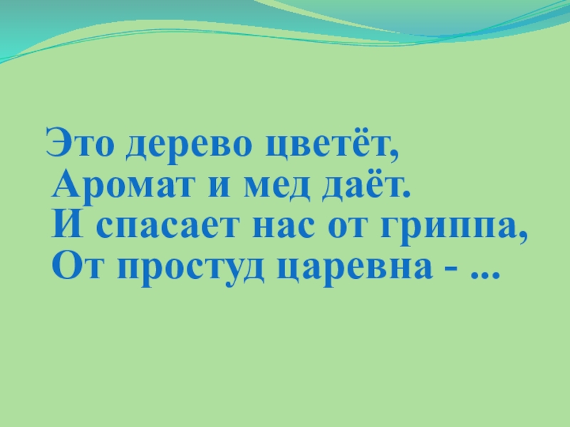 Это дерево цветёт, Аромат и мед даёт. И спасает нас от гриппа, От простуд