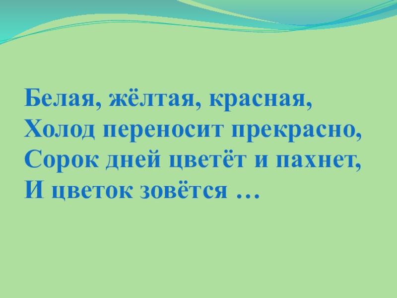 Белая, жёлтая, красная,Холод переносит прекрасно,Сорок дней цветёт и пахнет,И цветок зовётся …