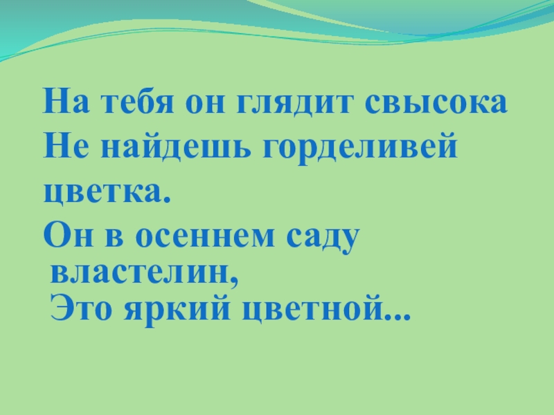 На тебя он глядит свысока Не найдешь горделивей цветка. Он в осеннем саду властелин, Это