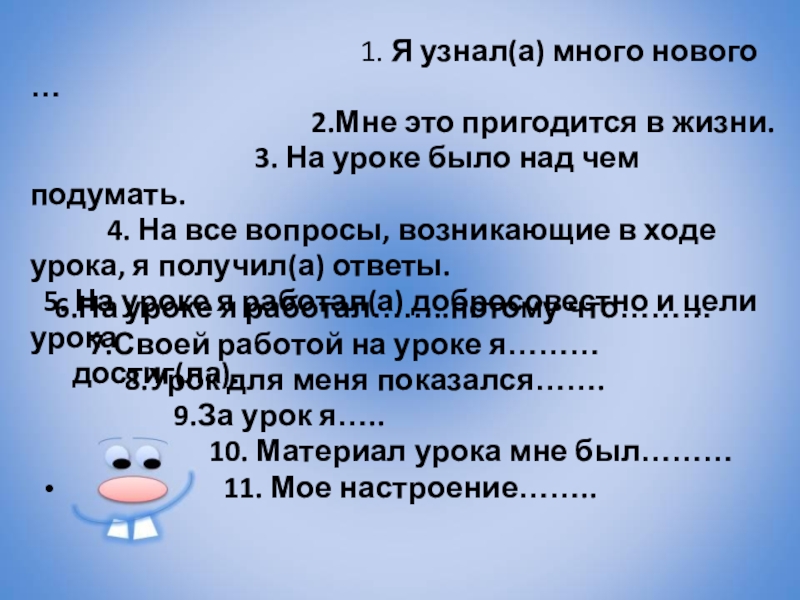 9.За урок я…..