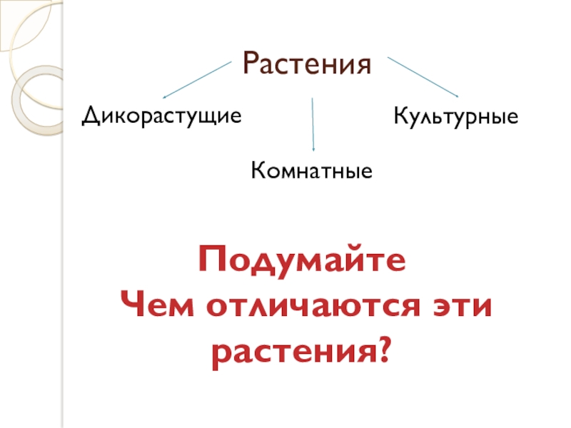 РастенияДикорастущие КультурныеПодумайте Чем отличаются эти растения?Комнатные