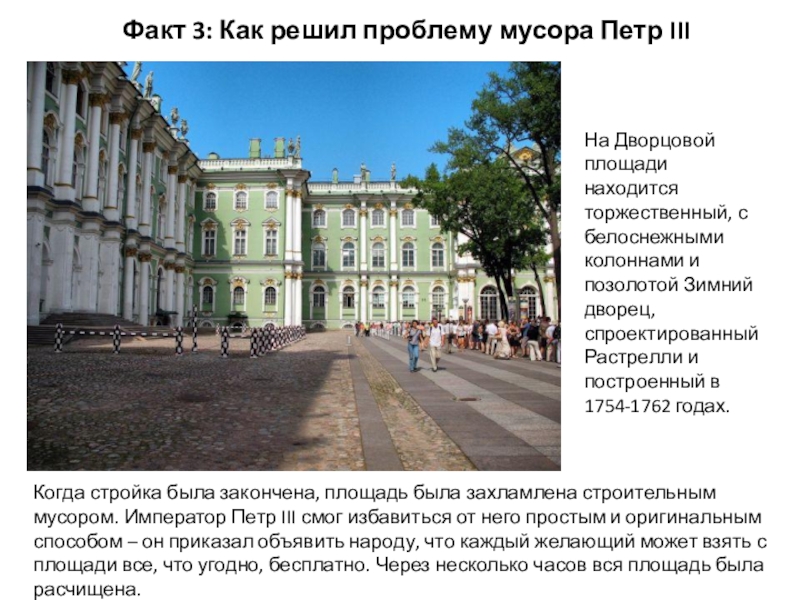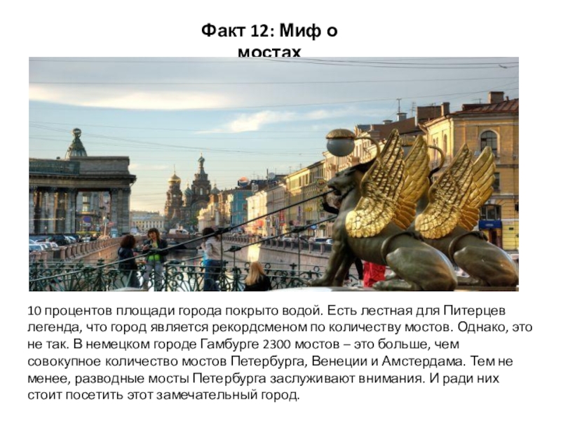Можно бесконечно много рассказывать не только об истории города, но и о его архитектурных памятниках. Здания, построенные в Петербурге до 1917 года, практически полностью сохранились. От Невы до Обводного канала и от Александро-Невской лавры до порта выглядит почти так же, как до Октябрьской революции. Санкт-Петербург при этом сочетает в себе постройки совершенно разных архитектурных стилей.